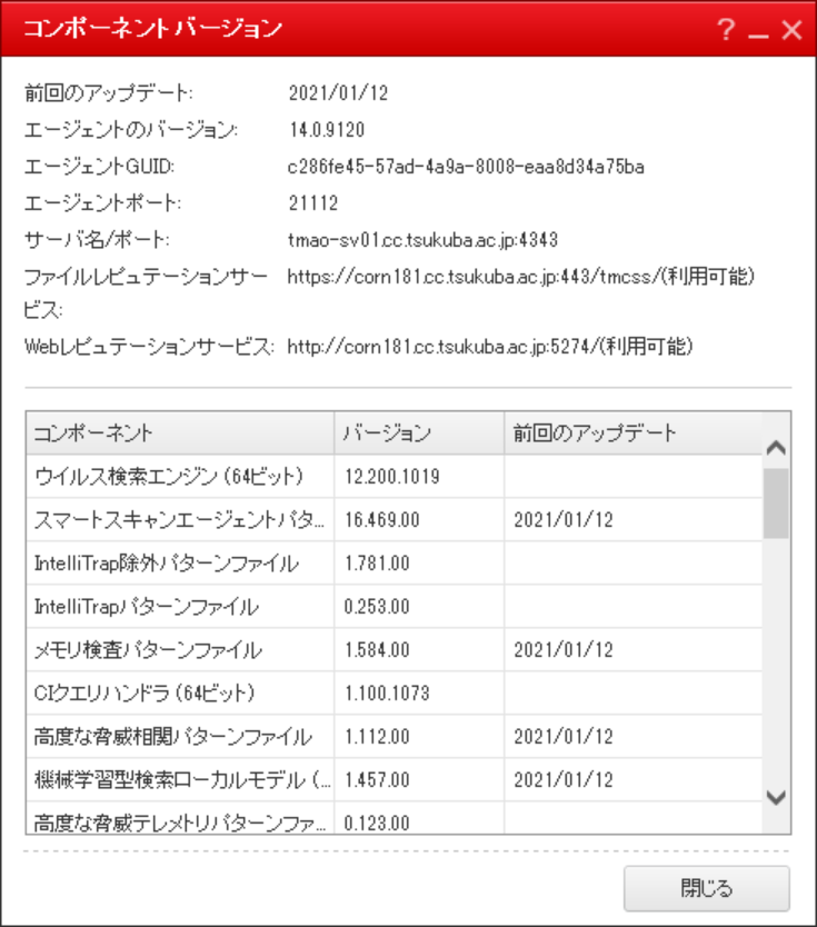 学術情報メディアセンターで配布している、トレンドマイクロ社製アンチウイルスソフト (Trend Micro Apex One) のクライアント用ソフトウエアバージョンは次のとおりです。