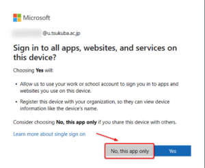 ★When [Sign in to all apps, websites, and services on this device?] screen (confirming my organization to manage my device) appears, click “No, this app only.”